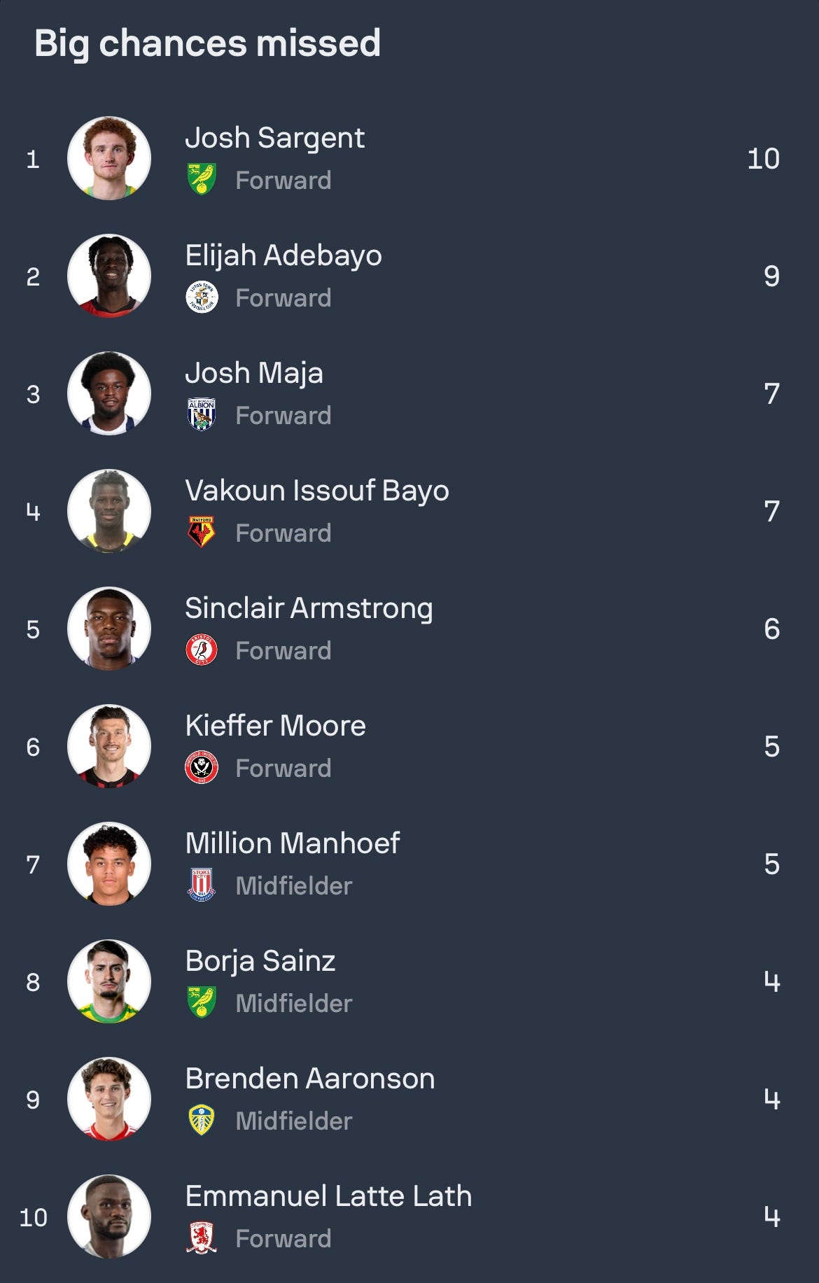 So on the face of it, looking solely at those numbers, Watford are projecting as a middle-ish table team, which is plausible. Watching us and applying the context that we’re more or less the worst defensive team in the league doesn’t really match with what I see. I don’t think we’re great by any means, but I do think we’re average at the very least, and that our defensive metrics maybe boosted through moments of madness rather than being an outright bad defensive team. I can’t question the mentality of this team as we’ve come from behind multiple times this season, but I do think there’s an element of Ange’s Spurs about us. When we go ahead or the game is 0-0, we get into a flow state and there’s large sways of control, but the moment it goes wrong, more often than not, it turns into chaos and we don’t deal with adversity that well. If you think back to the first game of the season vs Millwall there’s multiple instances. Watford had complete control in 37/45 minutes of the first half but on the 37th minute, at 1-0 Ngakia has a shot from a stupid angle and Millwall counter from that and create two chances worth 0.46 xG. In the second half, nothing was happening, Watford get a second and again seem in control but an individual mistake from Porteous and Andrews under no pressure gives Millwall a lifeline back into the game (0.18 xG), and then Millwall get an equaliser 10 minutes later through a Sierralta error (0.12 xG). We have a tendency to concede 1 then concede another within a 10 minute time frame. Think Norwich, Preston, Millwall, Sheffield United missed a pen, Coventry had glorious chances straight after they took the lead. Watford’s open play xGA is 10.3, one of the worst in the league but I reckon you could honestly take at least 2xG off of that, maybe more due to recklessness of player decision making rather than the team actively being bad defensively. I think Cleverley did get a few tactical tweaks wrong with having the wingbacks so high and wide as I’ve said. I think if Watford continue to create the chances we do every game and the personnel come back from injury and we actually have a settled backline, you’ll see quite a big improvement in chances conceded. We’ve chopped and changed between Pollock left or right, Porteous left or right, Ogbonna has only started three league games, Morris and Sierralta have also started a fair few, and Bachmann has been injured since Norwich away. Our defending on set pieces does have to get better though, I won’t deny that. Neither of our keepers are comfortable in crossing situations, so the solution to me would be to put Pollock, Ogbonna, Sissoko and another tall player in front of the keeper so he doesn’t have to come for it and can be ready on his goal line. To conclude, I think Watford are on the right path with a coach who’s clearly got the players on the side and playing an exciting brand of football. The biggest compliment I can give to Tom is he’s got me looking forward to watching us play. Whether we can maintain playoff level results remains to be seen, it would take one of the strikers to up their game and the rotational players to step up in the midweek games, but I have no qualms about the performance levels bar a few, as on the whole nobody has played consistently badly, which to me is the sign of a team that are headed in the right direction.