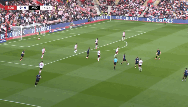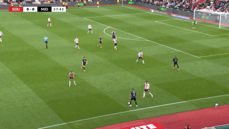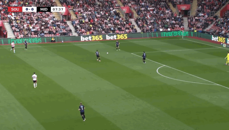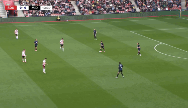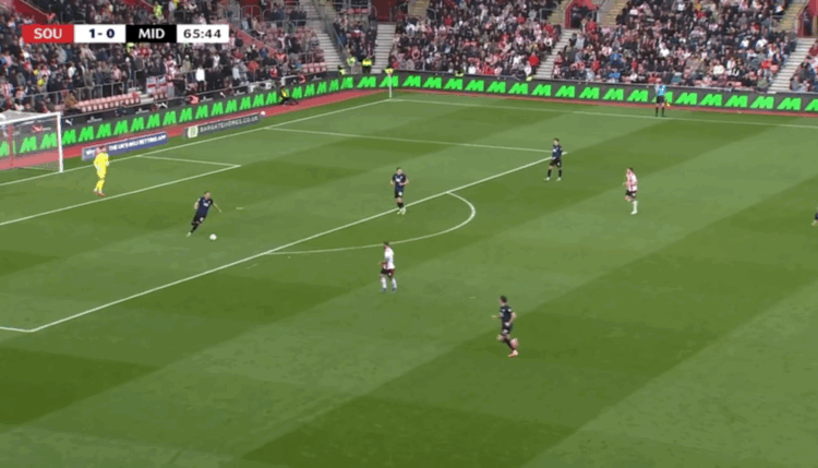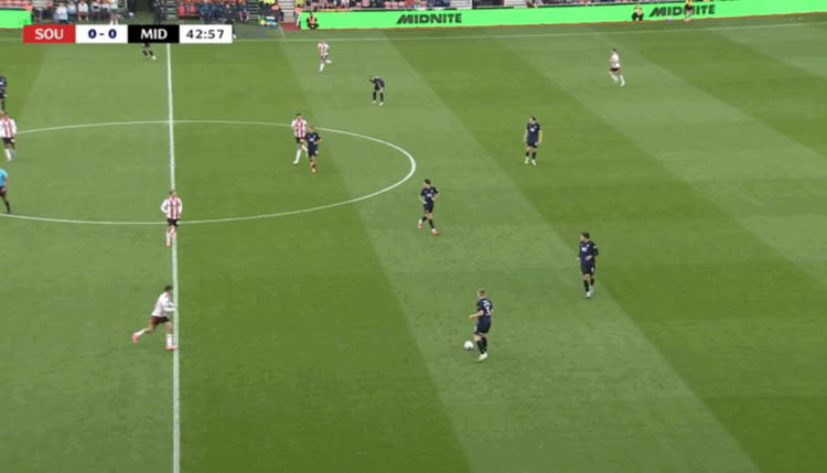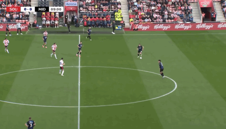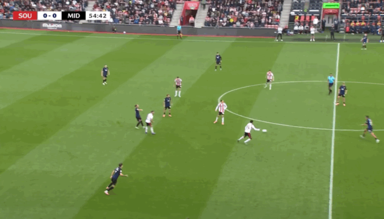 Hackney was a bit more reserved in his role vs Southampton. Where against Ipswich he had more freedom to get forward, he was picking up the ball from the defenders almost every time rather than being slightly ahead to receive. But again like I’ve already highlighted regarding his passing ability, It’s not that expansive. He was playing very short passes into tight spaces again and looking to get the return to carry ahead.