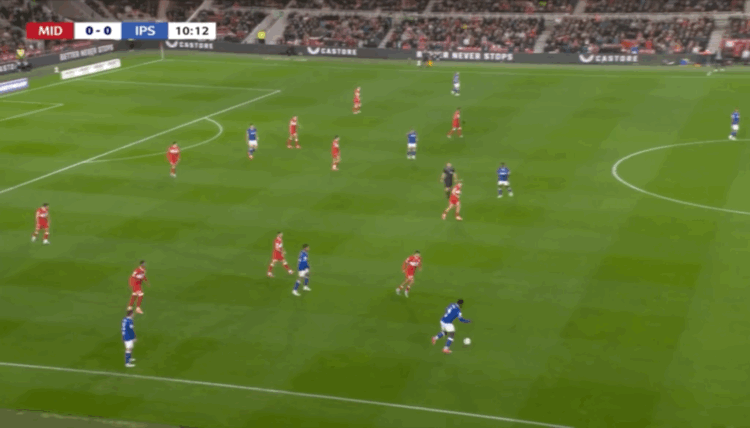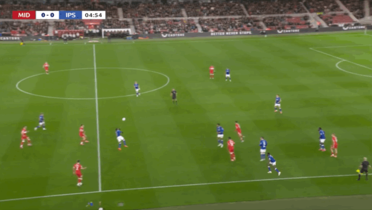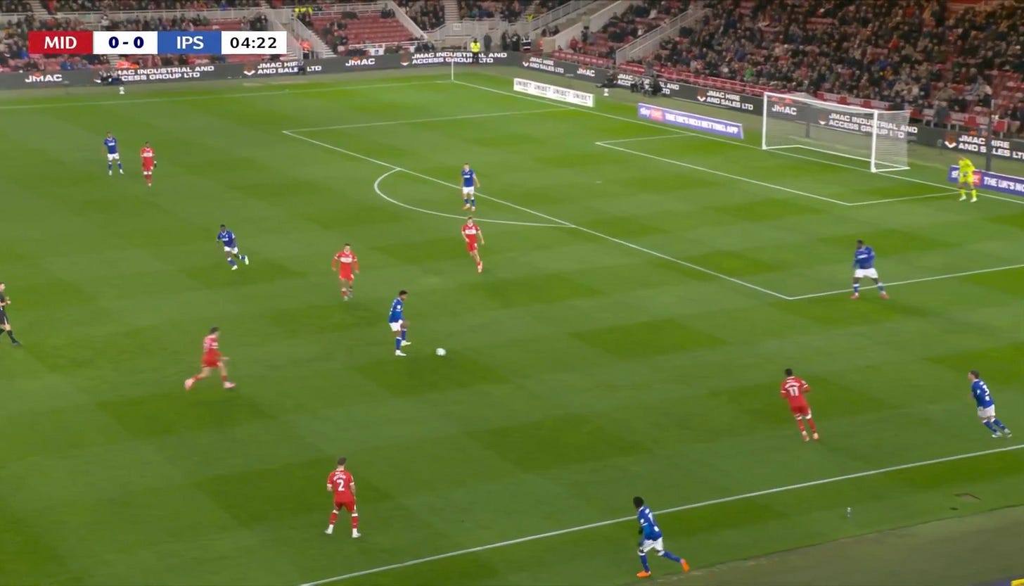 As I mentioned earlier, defensively he’s not the best at picking up runners or knowing where they are. He lost the Ipswich attacking midfielder who he was level with and then got caught ball watching as he peeled off behind him.