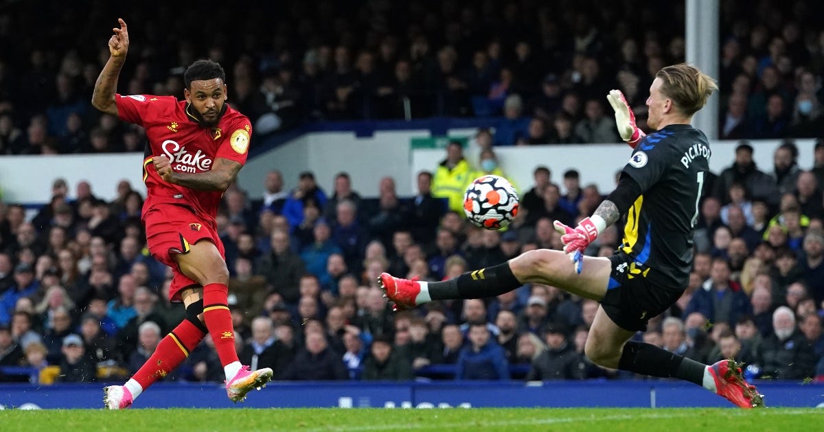 There’s been a debate on Twitter recently regarding Joshua King and what he offers to this current Watford side. Given Twitter is the oracle of everything, I thought I’d write something about Joshua King and how key he’s been, and will be in our battle for survival; and this is coming from somebody who wasn’t keen on signing King last summer. Watford brought in the Norwegian striker on a free transfer after leaving Everton in the summer of 2021; looking back exactly 10 years ago, you wouldn’t be thinking he would be a number 9, or a modern number 9 for a Premier League club — especially given all the way through his career in English football up until signing for Bournemouth, and even then he never led the line; King was deployed as a winger at Hull and Blackburn — and not exactly productive either. It wasn’t until a surprising move to Bournemouth that King was partnered with Callum Wilson in a 4411, with the former operating just behind Wilson, in a role to supply his teammate, or sometimes on the left of a 442. But it wasn’t until a move to Watford at the age of 30 that King was tasked with being the first choice number 9 leading the line. But the question is, how good is he doing?